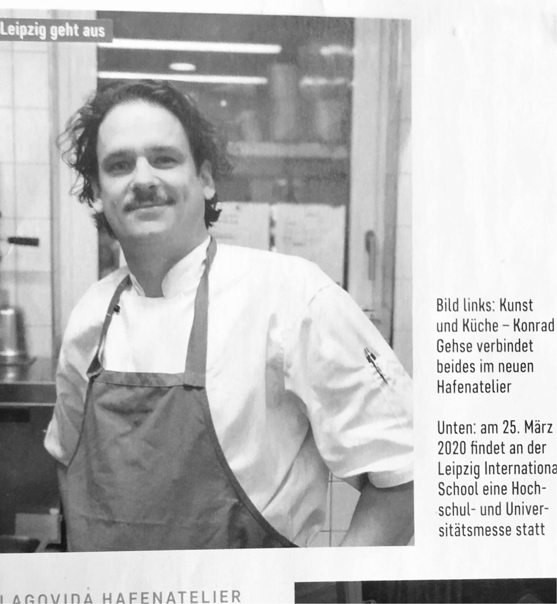 Maler oder Koch - Koch oder Maler? Gehse ist beides mit wirklicher Leidenschaft. Im Jahr 1999 ist Konrad Gehse mit einer Reisetasche auf Besuch bei seinem Vater Albrecht in Berlin. Er beschließt bei zwei bis drei Hefeweizen auf einem Sportplatz im Grunewald (beide waren vorher auf Besuch beim Uropa Ludwig G´schrey), sich zunächst um eine Kochlehre in einem großen, vornehmen Berliner Hotel an der Friedrichstraße zu bewerben um Koch zu lernen. Gehse hatte das Gymnasium in Leipzig geschmissen und braucht nun eine abgeschlosene Berufsausbildung, um Malerei zu studieren. Professor Wolfgang Peuker will Konrad Gehse in seine Malklasse an der Kunsthochschule Weißensee aufnehmen - verstirbt aber unter tragischen Umständen kurz vor der Aufnahmeprüfung. Tatsächlich wird Gehse auch an der HGB Leipzig abgelehnt (einer hatte dem Hause wahrscheinlich gereicht) und geht nun weiter seinen autodidaktischen Weg. Er stürzt sich in den Kochberuf und arbeitet sich durch namhafte Berliner Restaurants und stellt seine Bilder nun einfach dort aus. Ein Studium holt er trotzdem nach, im Atelier des Vaters ist er praktisch 5 Jahre Meisterschüler. So ein Verhältnis ist beileibe nicht selbstverständlich, weiß Albrecht Gehse - in den 1980ern Meisterschüler bei Bernhard Heisig - zu berichten, dessen Söhne und ebenfalls namhafte Künstler, ein schwieriges und leidvolles Verhältnis zum "Übervater" hatten. Juliane Gehses Halbschwester Katrin ist Johannes Heisigs Stieftochter - dies nur am Rande.